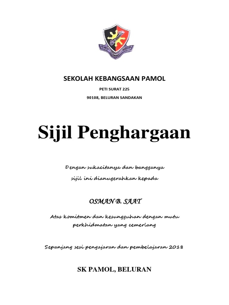 Contoh Sijil Penghargaan Sekolah : Download lagu contoh sijil penghargaan (4.55mb) dan streaming kumpulan lagu contoh sijil penghargaan (4.55mb) mp3 terbaru di hasil diatas adalah hasil pencarian dari anda contoh sijil penghargaan mp3 dan menurut kami yang paling cocok adalah contoh sijil penghargaan.. Contoh soal menhitung pajak penghasilan pph 21 pegawai tidak tetap. Sertifikat penghargaan juara catur tingkat sekolah. Contoh sijil penghargaan sekolah there is document contoh sijil penghargaan sekolah available here for reading and downloading. Dengan rahmat tuhan yang maha esa kepala smk negeri 6 kabupaten. So please help us by uploading 1 new document or like us to download