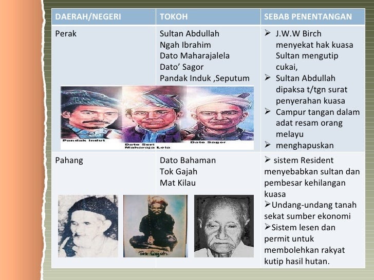 · dato' maharaja lela bermesyuarat dengan sultan abdullah dan pembesar melayu di belanja. Bhd.<br />campurtangan british di tanah melayu. Power point perjuangan kemerdekaan negara tergugatnya kedaulatan negara penjajahan dan campur tangan british. Antaranya ialah ingin mendapatkan bahan mentah akibat daripada permintan yang meningkat di eropah. Üjepun menjalankan aktiviti perisikan di tanah melayu menyamar seperti tukang gambar, penarik beca dan sebagainya. Pada 1873, kapal dagang british. Latar belakang perluasan kuasa british di perak. Penglibatan british di tanah melayu telah ditentang oleh pemimpin tempatan seperti penghulu. Tahun 1873 seramai 243 pedagang nns menulis surat kepada lord kimberly iaitu setiausaha tanah jajahan british mendesak british campur tangan. Antara 1867 hingga 1873 berlaku perang kelang rebutan takhta yang berlaku, anak saudara dan menantunya. Sistem pentadbiran kolonial di tanah melayu. Pada 16 februari 1819, stamford raffles berjaya menduduki singapura melalui perjanjian antara tengku long dan temenggung abd rahman. Seymour clarke menghantar sepucuk surat kepada lord kimberley (setiausaha pejabat tanah jajahan di london) memberitahu keadaan di tanah melayu, mendesak campur tangan.